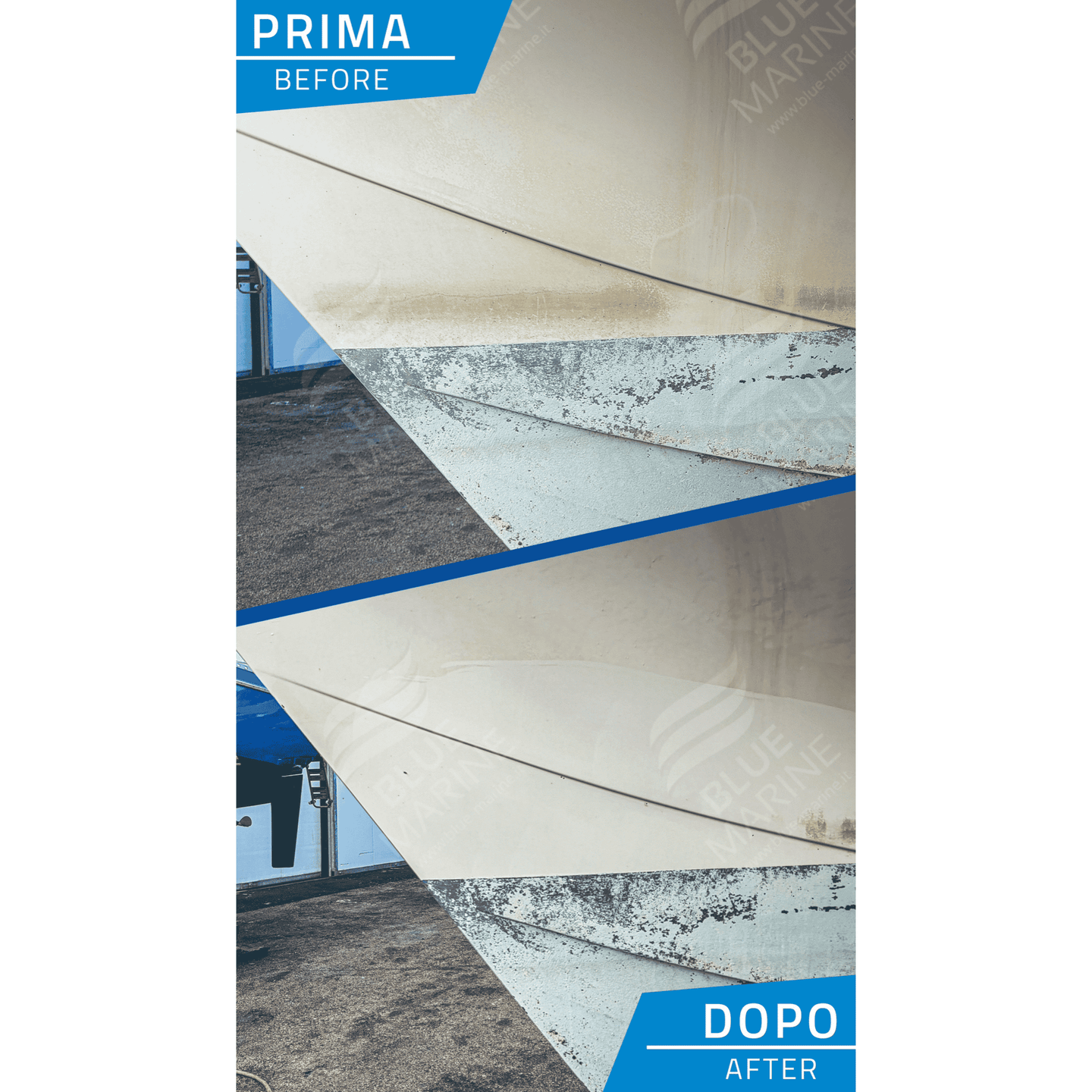 Blue Marine Laser Gel is a gel formulation, acid-based descaler, and oxide remover. It removes all kinds of fouling and limescale (barnacles) from outboard motors and hulls made of fiberglass and polyester.